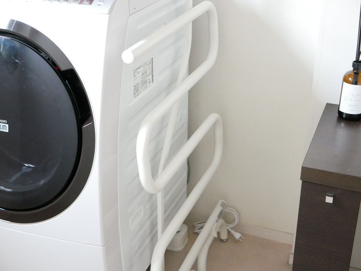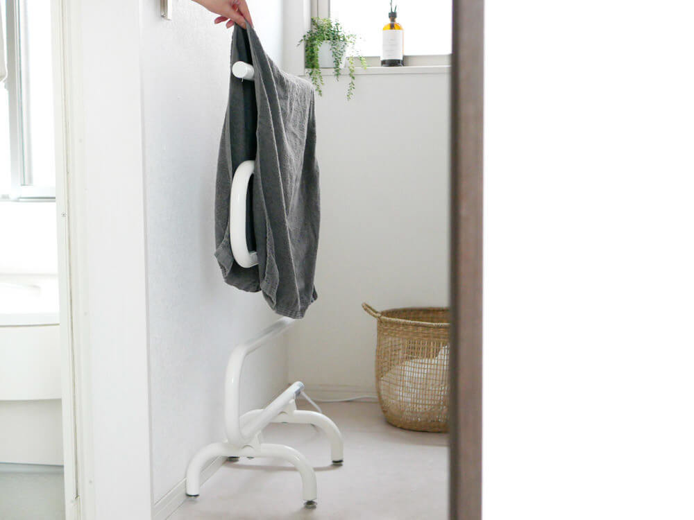 それに、使用後のタオルを掛ければ、すぐに乾燥させ、清潔に保つこともできるんです。また、脱衣所をほんわかと温めてくれるのでちょっとした暖房効果も!