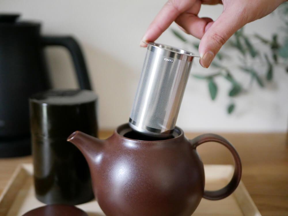 細かな茶葉も濾せる丈夫なステンレス素材の専用ストレーナーがセットがされています。