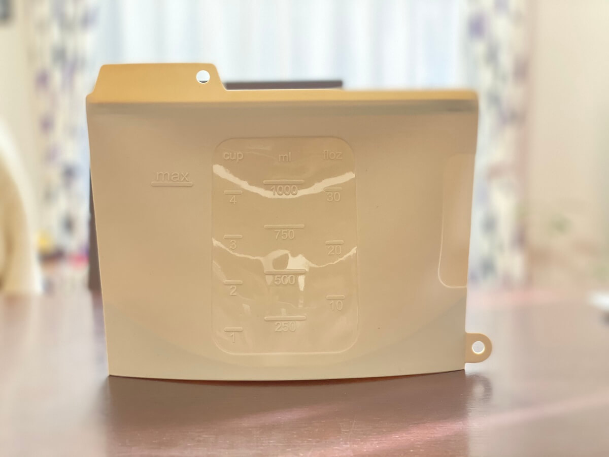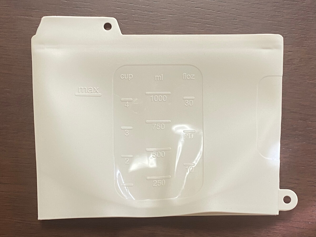 でも、スタッシャーのデメリットはその価格。3COINS「シリコーン保存袋」と同じくらいのサイズの「スタンドアップミディアム」は1つ2,300円と約8倍。これをいくつも買い揃えるとなると、もれなく家計がひっ迫しちゃいますよね(笑)。
