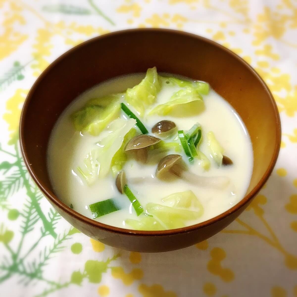 2.キャベツとしめじの便秘解消☆豆乳味噌スープ