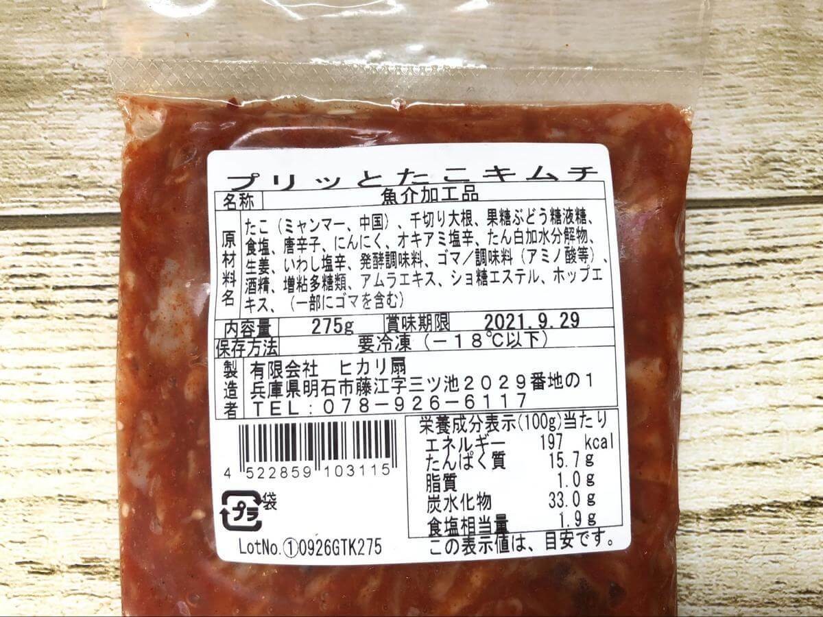 まずは冷凍品コーナーで見つけた「プリッとたこキムチ」から。