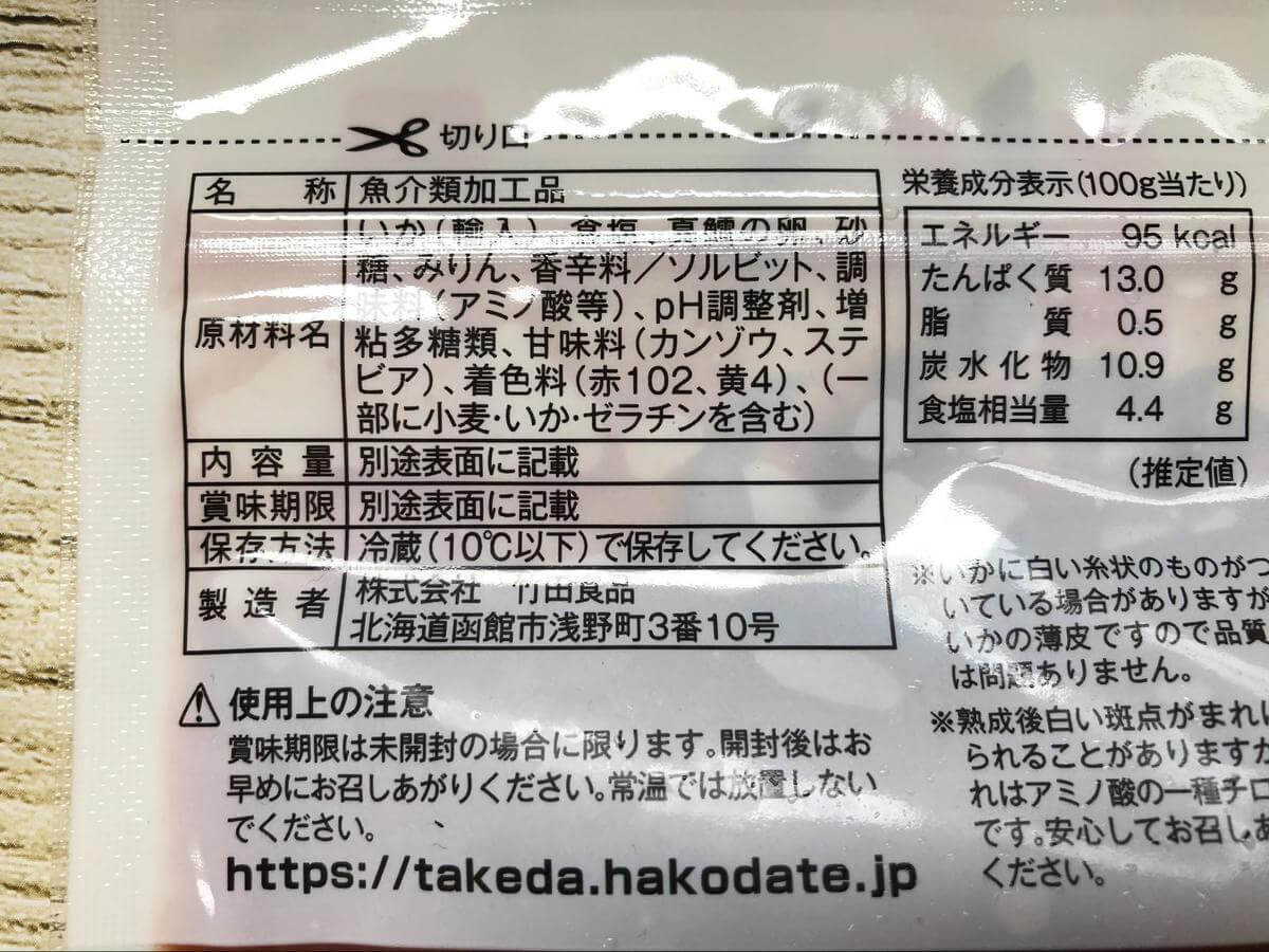 材料はいかと食塩、たらこがメインのようです。となると、何となく食感はイメージできます。