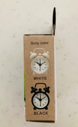 今回ご紹介するのは、ダイソーの「ミニ目覚まし時計 220円」です。パッケージの大きさは縦6.5×横4.5cmとミニサイズ。
