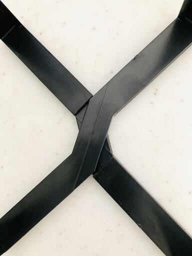 接続部分を開いてアップにしてみました。角が溝の側面に当たることで、止まるようになっています。中心部分は折れにくいように厚みがあります。