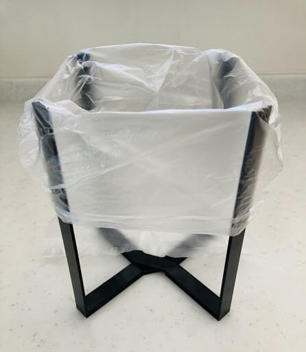 水切り以外にも、ポリ袋をセットしてゴミ箱代わりに使う方法があります。実際にポリ袋をセットしてみました。Sサイズではポリ袋の上部に余裕がありますね。生ごみなどを入れた後でも、袋の口を縛りやすそうです。