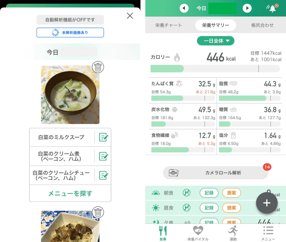 ・食べたものをいちいち入力するのが面倒