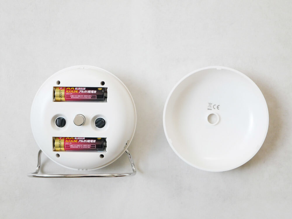 タイマー設定・時刻設定をする部分や、電池を入れる部分は、外観のデザインを損ねないよう、背面ケースの中に隠されています。