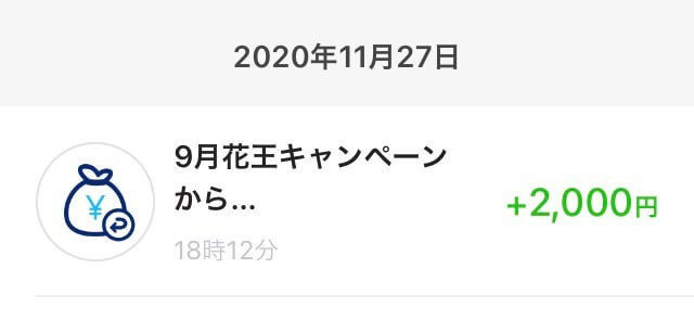 9月に開催した花王×PayPayも利用しましたが、ポイントが付与されたのは11月27日でした。