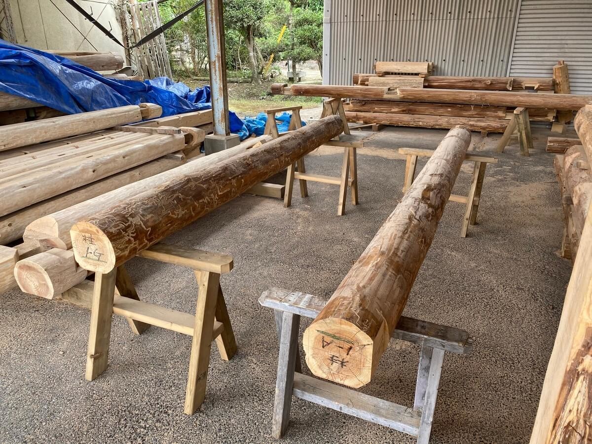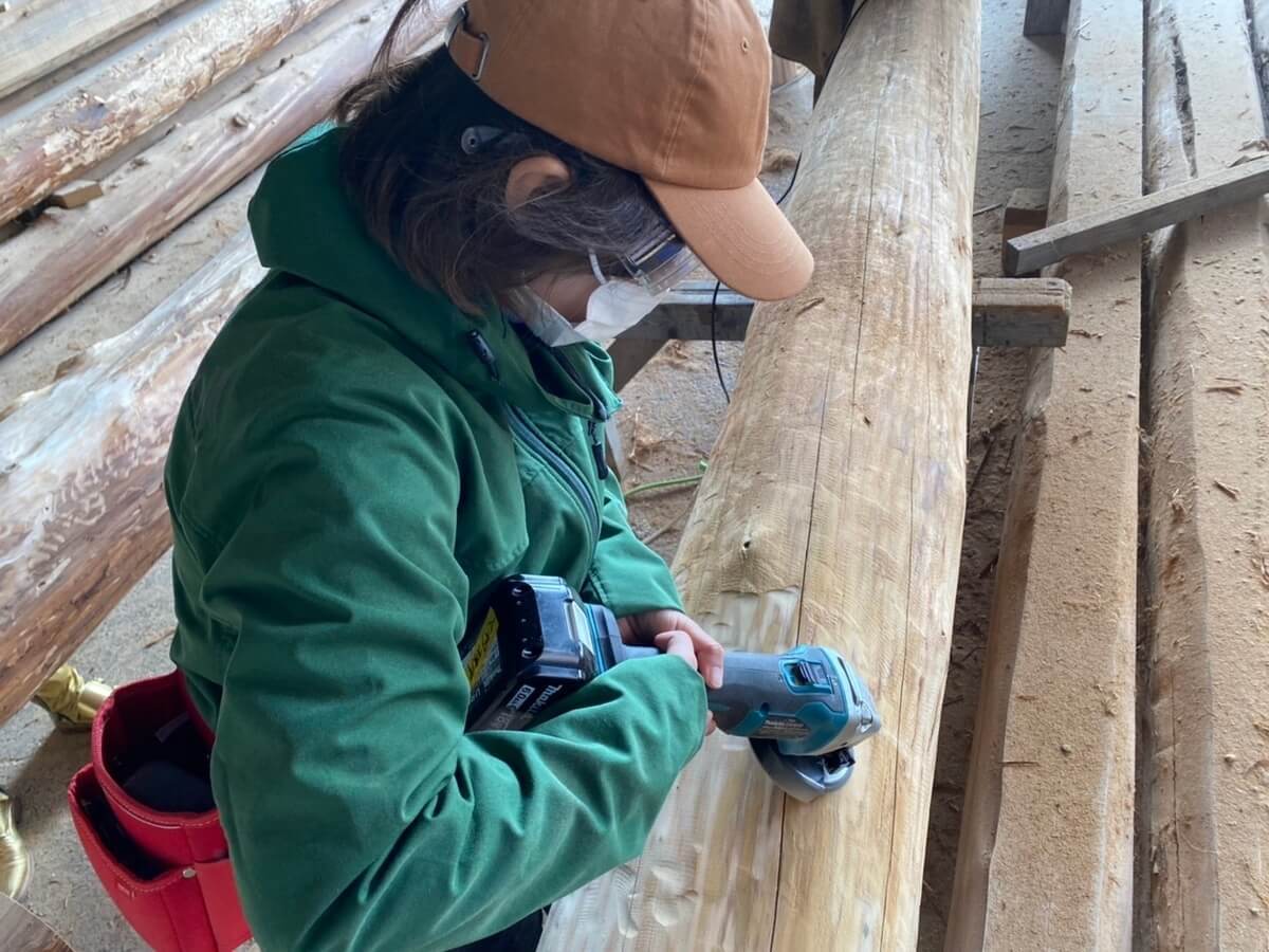 加工の仕上げに活躍!柱や梁となる丸太の表面を磨きます