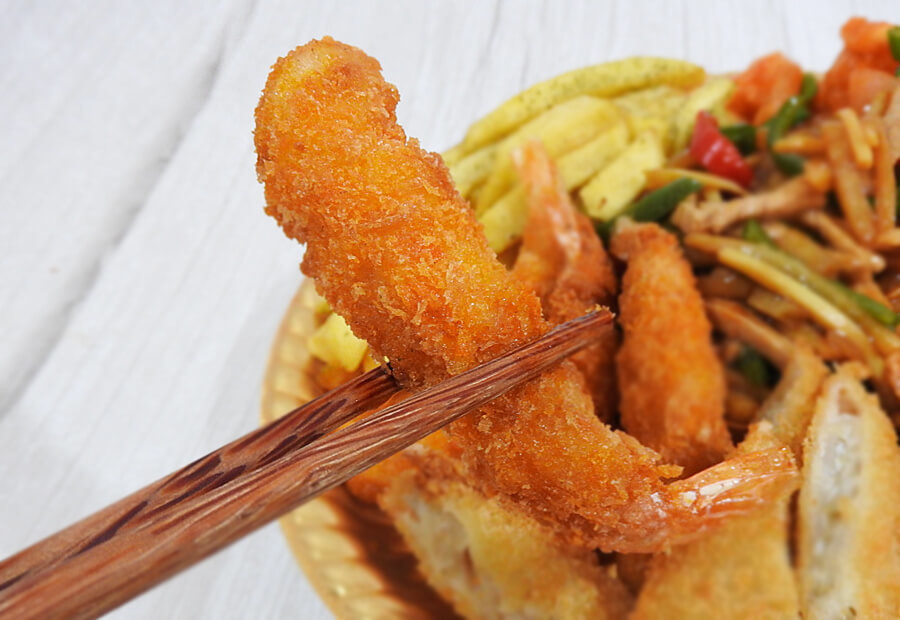 エビフライは小振り。お弁当箱のおかずにそのままでも入りそうな位のサイズ感でした。衣はべっちょりはしておらず、少々サクッと感は保っています。