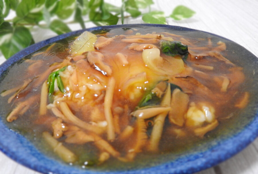 あんかけはしいたけとタケノコの味が染みた、醤油系の優しい味に仕上がっていました。思ったよりは味が濃くなかったかも。