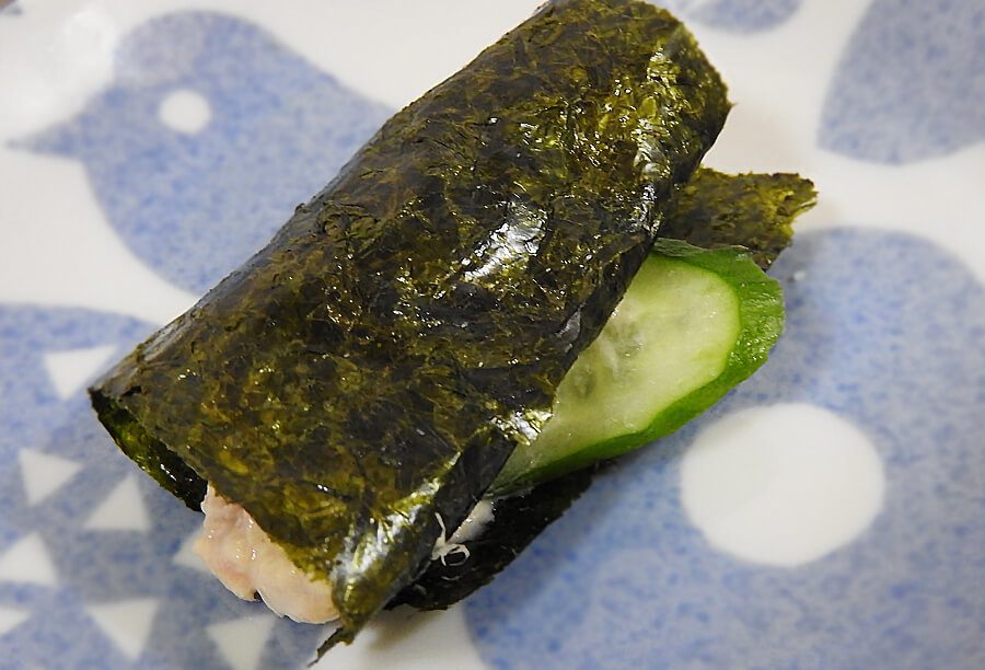私や夫が不器用なのかもしれませんが、手巻きを作るのが難しいと思いました。特にシャリの配分が難しい……!海苔が小さめですので、シャリが多いと海苔の長さがたりません。
