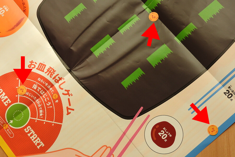 スシロク2の裏面には、お皿飛ばしゲームも。
