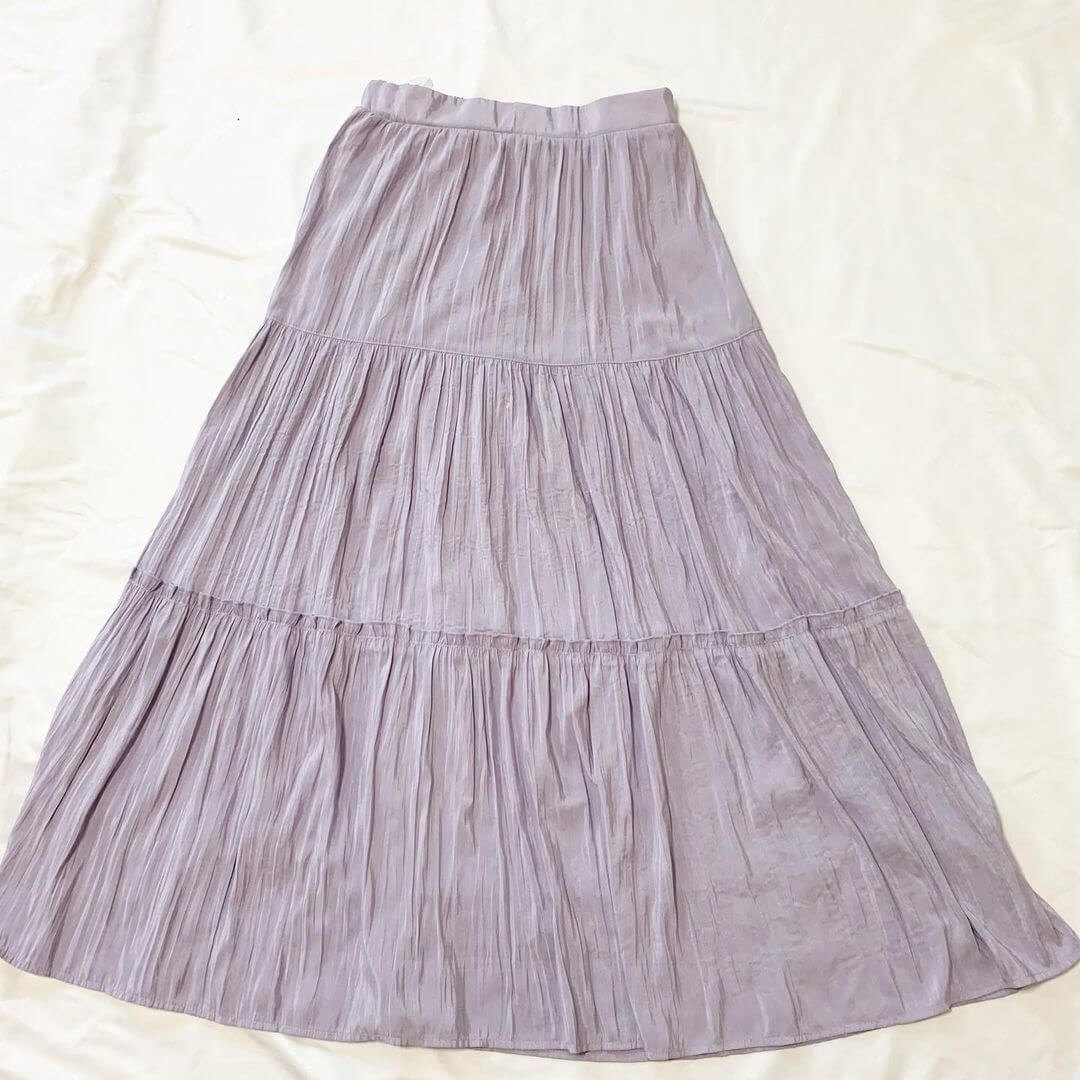 春らしい爽やかな気分を楽しめる、ラベンダーカラーのスカート。