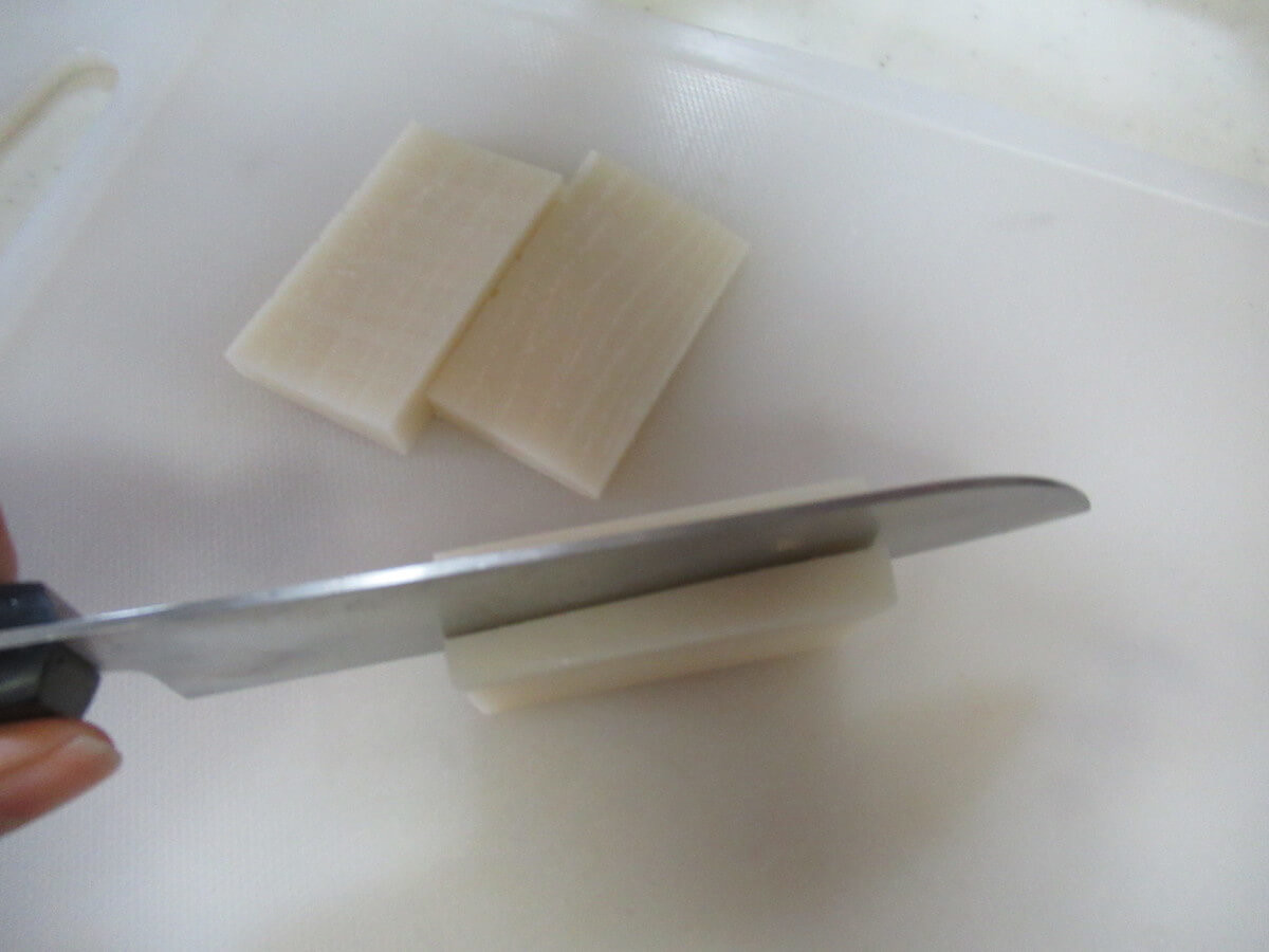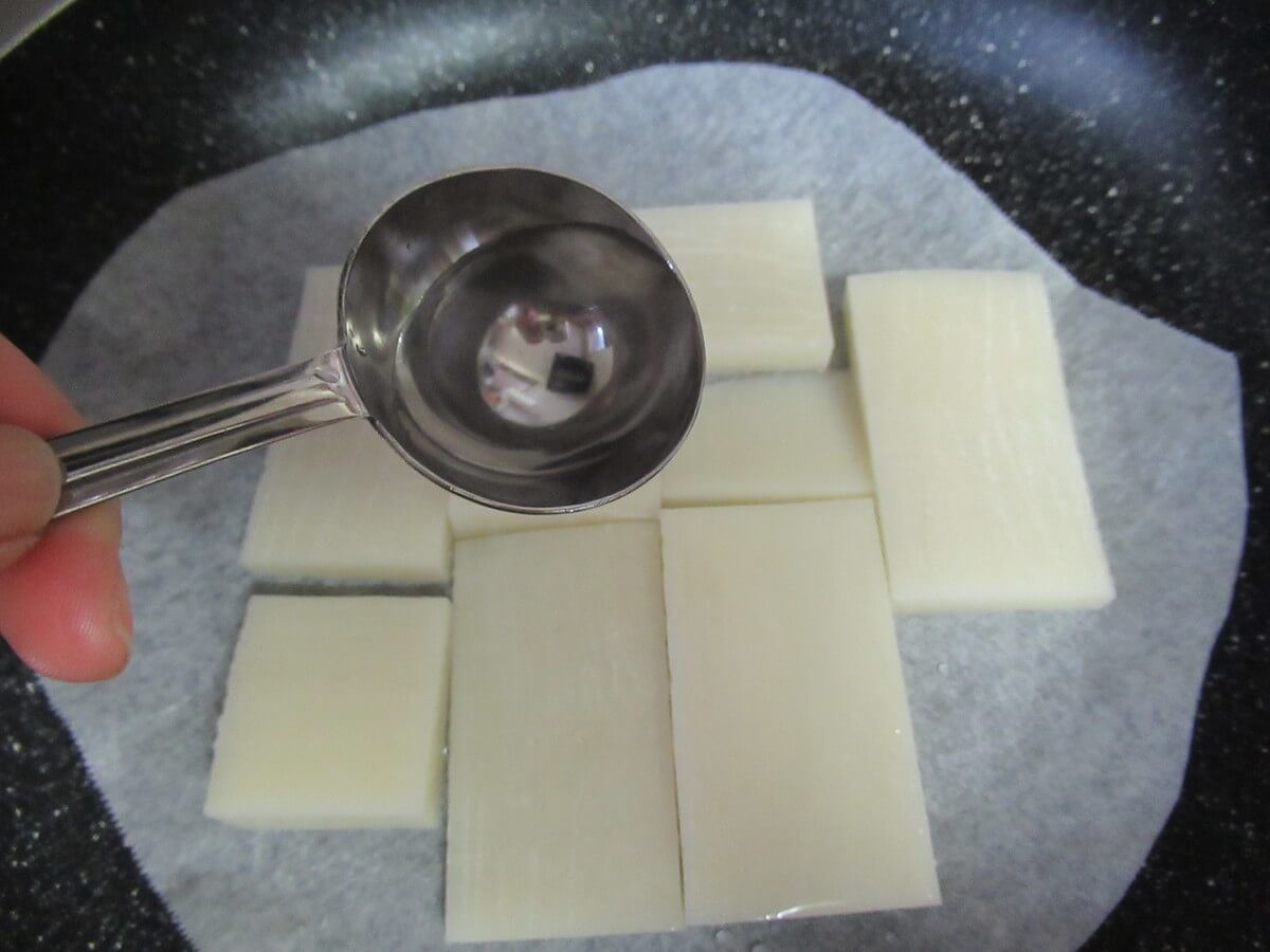 5.一旦取り出し、フライパンに油を引いたらひっくり返しておもちの面を焼く