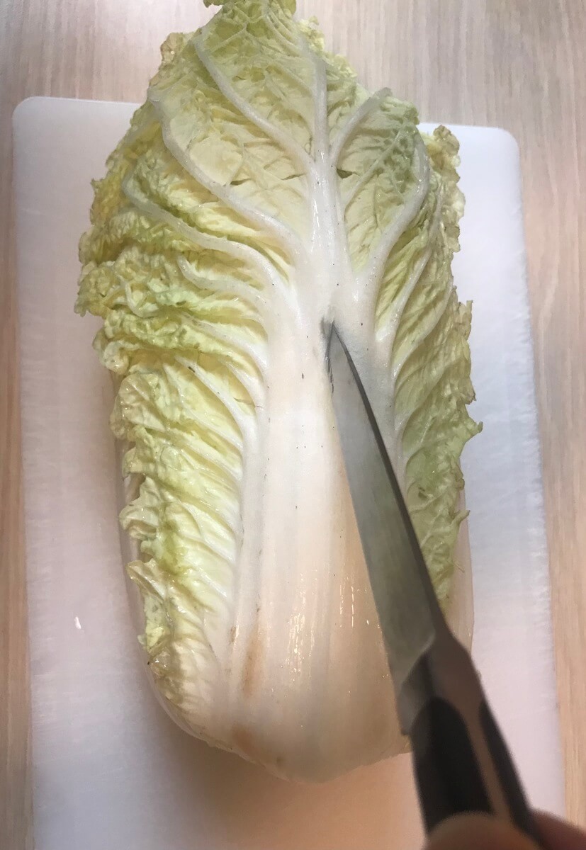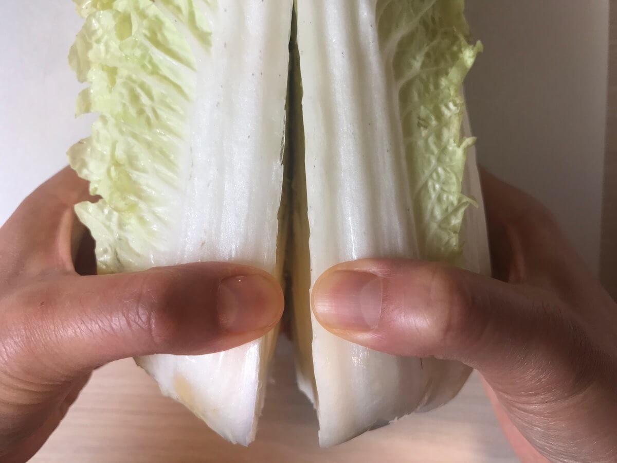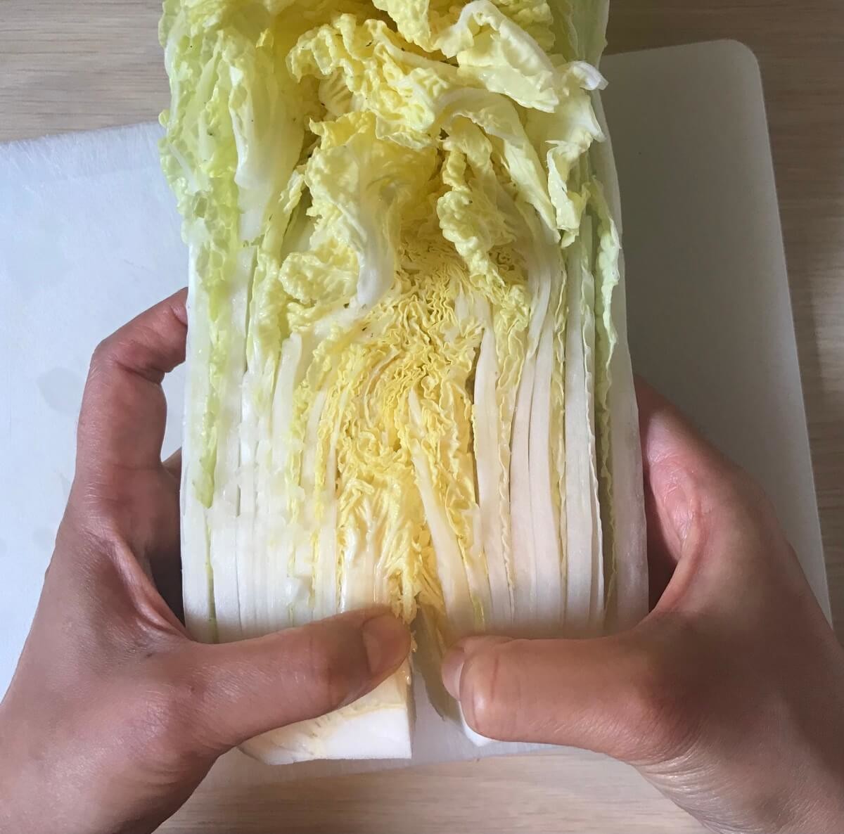 白菜の大きさによっては、力強く手で広げる必要があります。