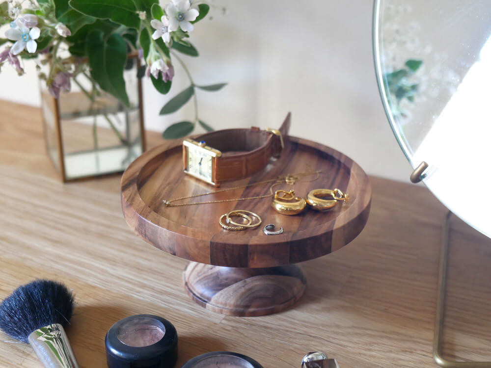 アカシアで作られた温もりあるデザインが魅力の「コンポート」は、アクセサリーなどのディスプレイにも◎です♪