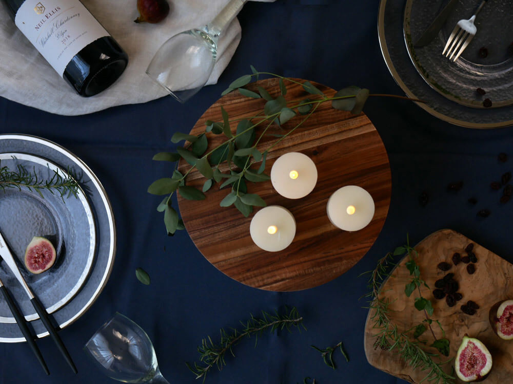 アカシアの落ち着いた色合いが、シックで上品な雰囲気を演出し、おしゃれなレストランのような大人のテーブルコーデに仕上がります。