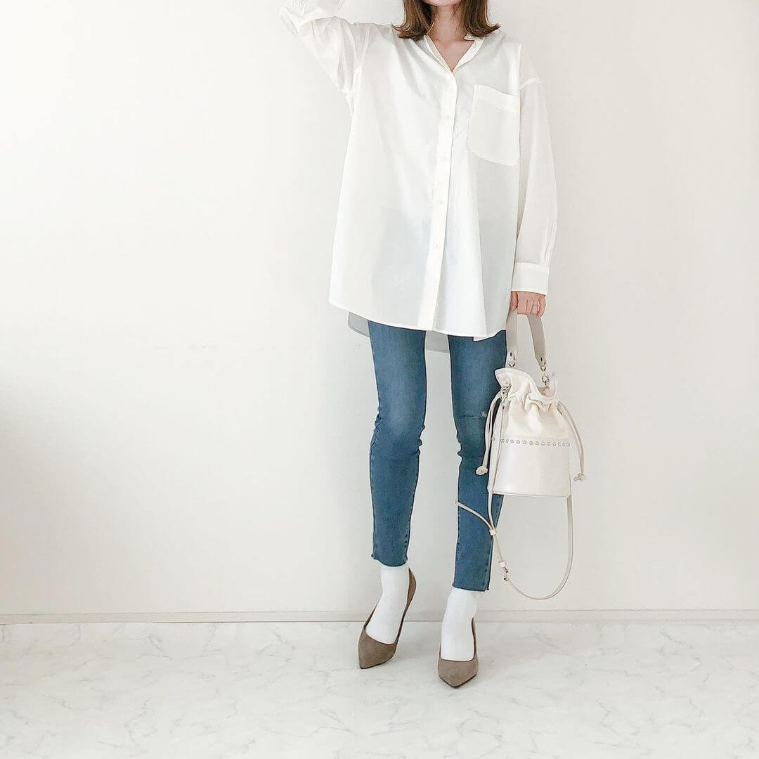 その中でも着回し力抜群のオフホワイトシャツをセレクトした、ファッショニスタのコーデに併せて詳しくお伝えしていきますね。