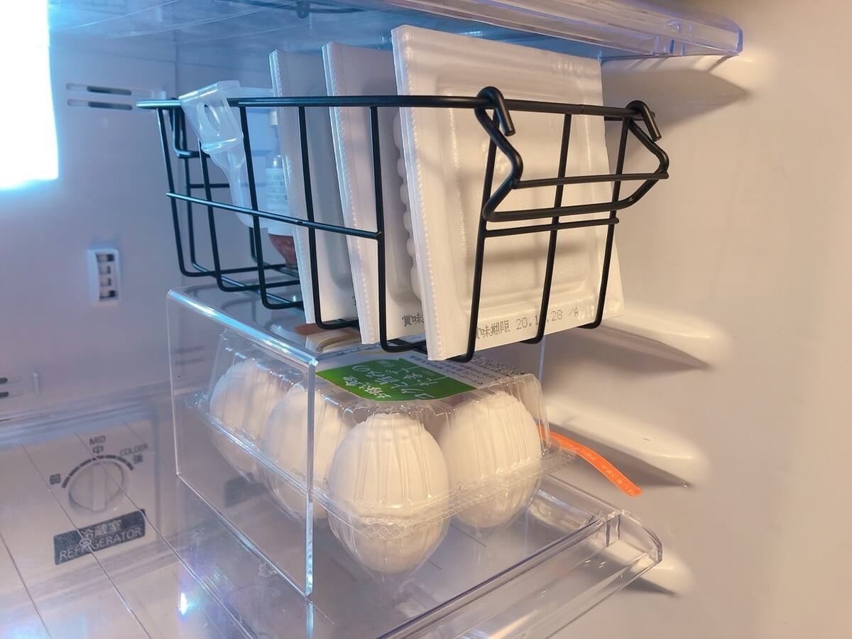 ウインナーや小パックの豆腐など小さい食材入れておく場所にすれば、探す手間がなくなります。冷蔵庫を開ける時間も減って、ちょっとした電気代の節約にもなるかも!