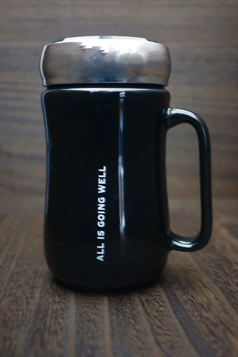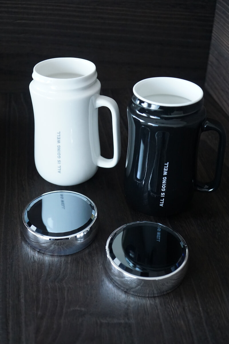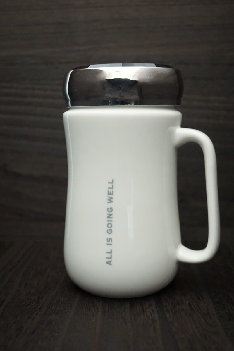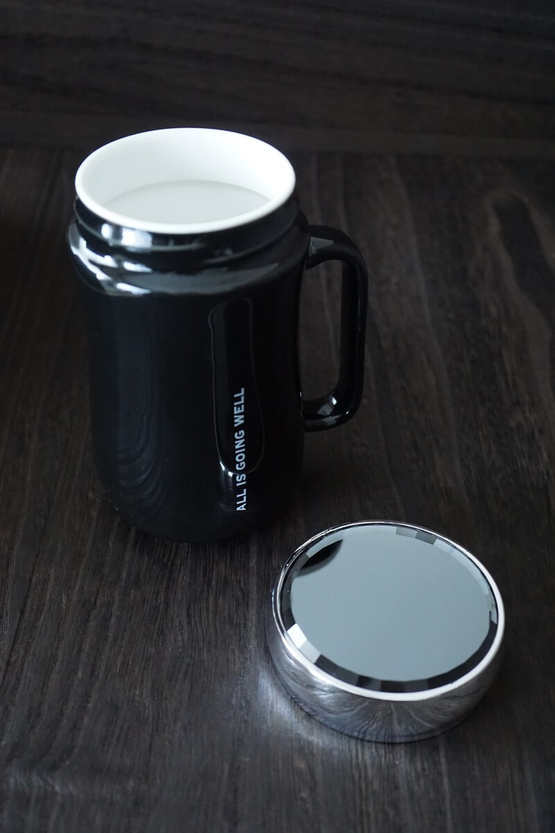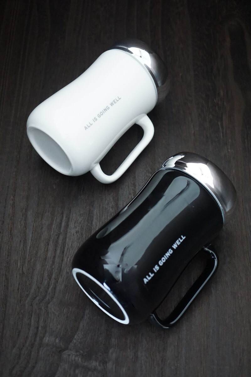 こちらのマグカップの一番の特徴は「蓋つき」ということ!