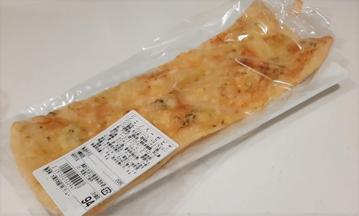 全長20cmほどの長ーいピザなので、カットしました。 こちらも食べる前にトースターで温めると◎です。