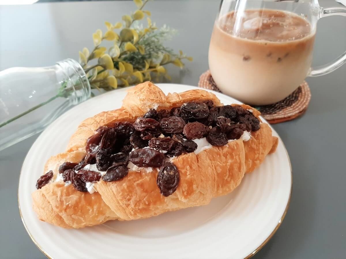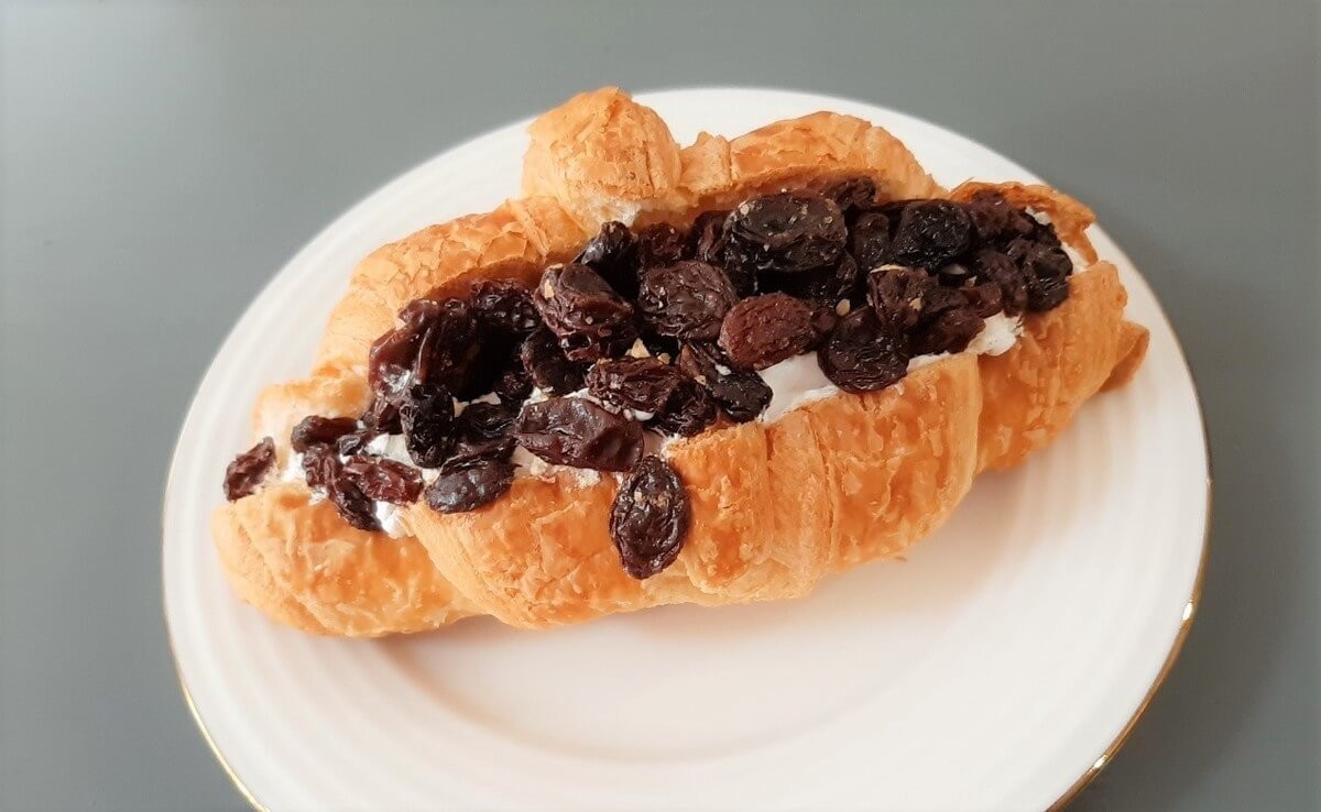 こちらは通常サイズのクロワッサンにホイップクリームとレーズンをサンドしたもの。