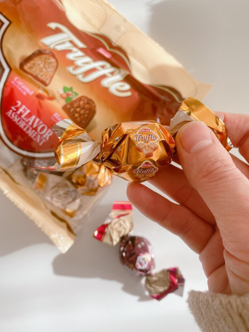 他店の7割引きで売られていた高級チョコアソート「エルヴァン トリュフアソート」です。