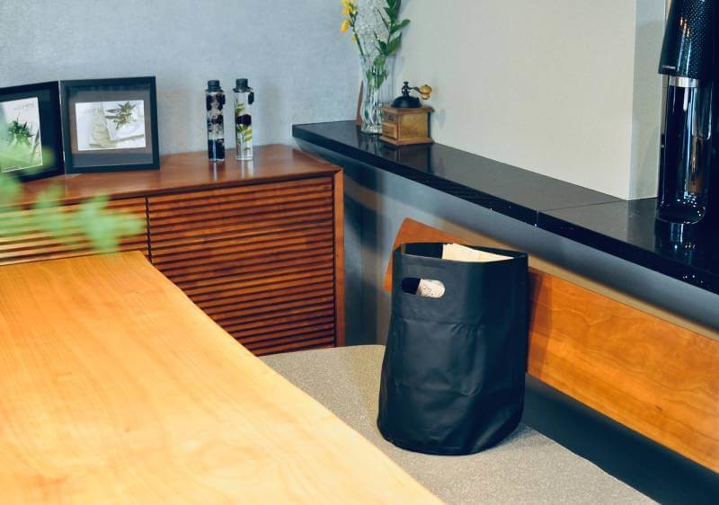 隠したいものはポイッと入れられる、とっさの移動がラク、使わない時は畳んでしまえる……と、とにかく便利。どこに置いておいても違和感のないデザインも素敵です。