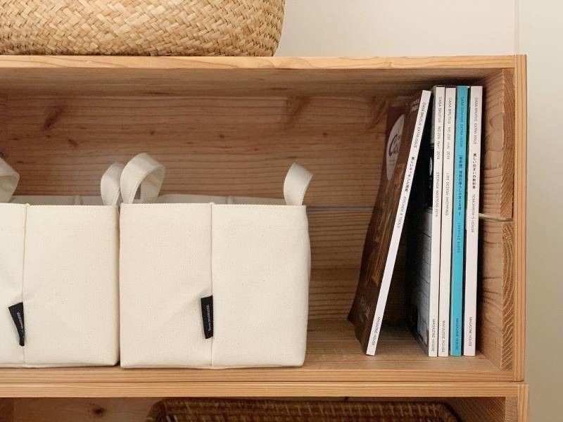 bon momentの「目隠しできる帆布素材の収納トート」を使って、リビングがかわいく片付く方法をご紹介します。