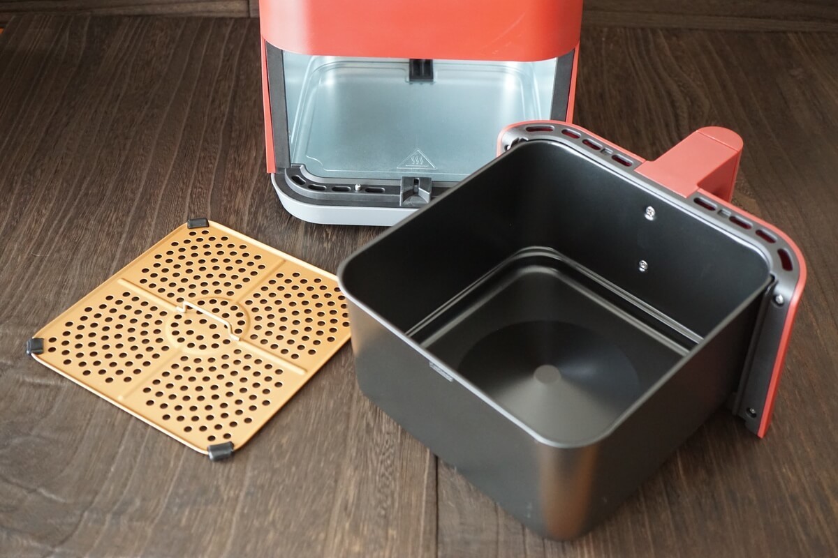 エアーオーブンは従来の熱風調理家電に比べるととてもコンパクトですが、バスケット内の容量は約2.8Lとたっぷり食材を入れることができます。