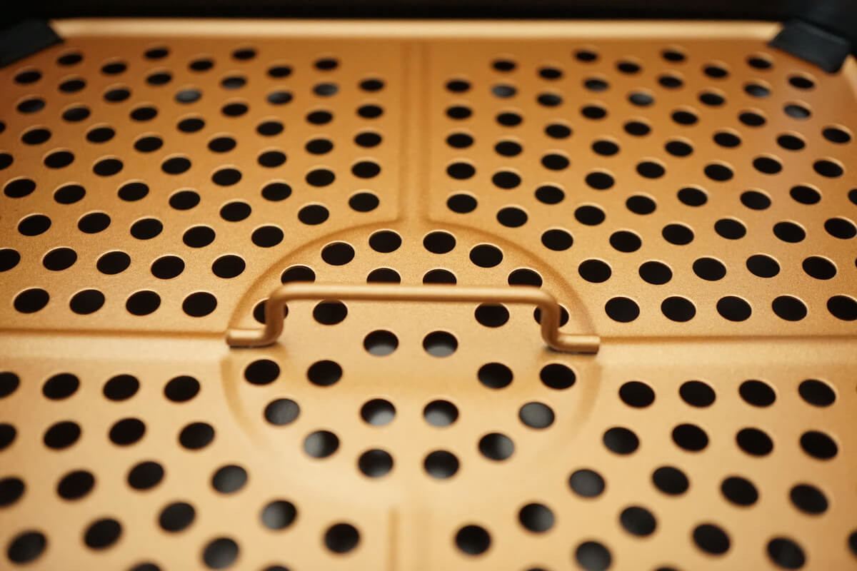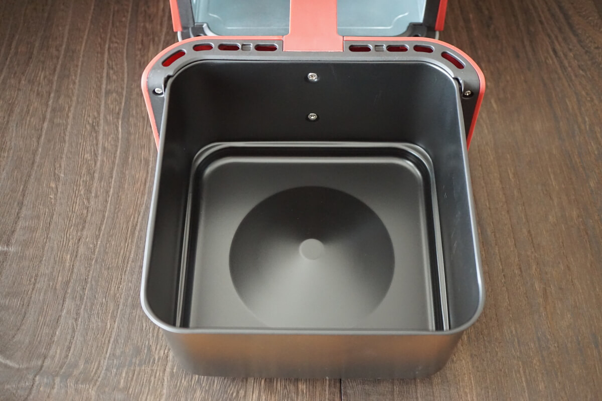 バスケットの底は熱風を効率よく吹き上げるデザインになっているため、中央部分が盛り上がっています。