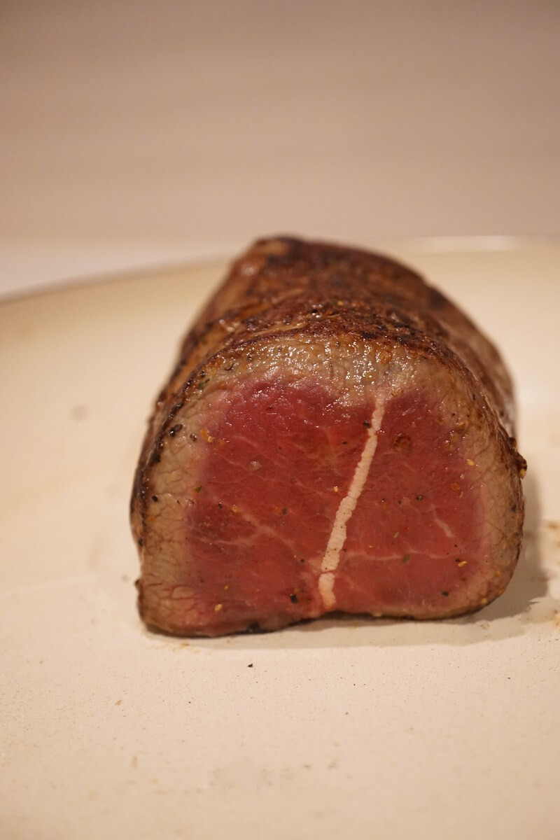 おうちで作るからこそできる超厚切りローストビーフ!ステーキのようなローストビーフのようなどちらともいえない食感が味わえます。
