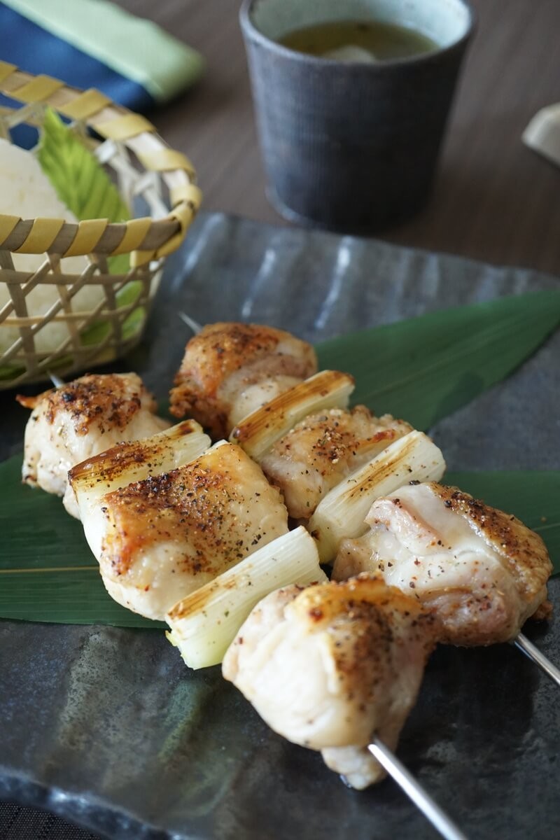 ネギはそのまま刺してもしっかりと焼けますが、串にさす前にレンジで30秒ほど温めると甘みが増すのでレンジで加熱をしてから串にさすのがおすすめです。