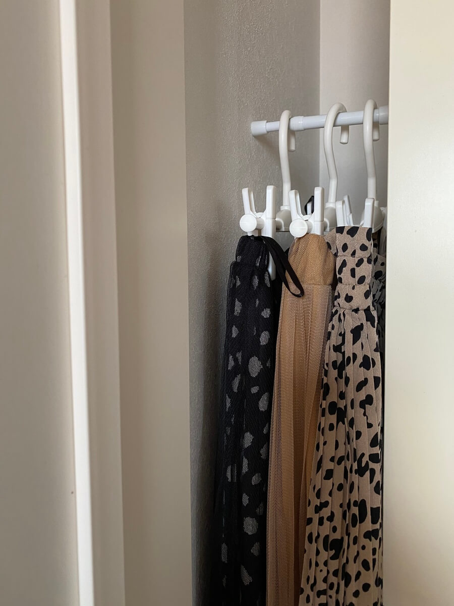 今までここの隙間にはお掃除道具を立て掛けていたんですが、これからはスカート収納になりました。