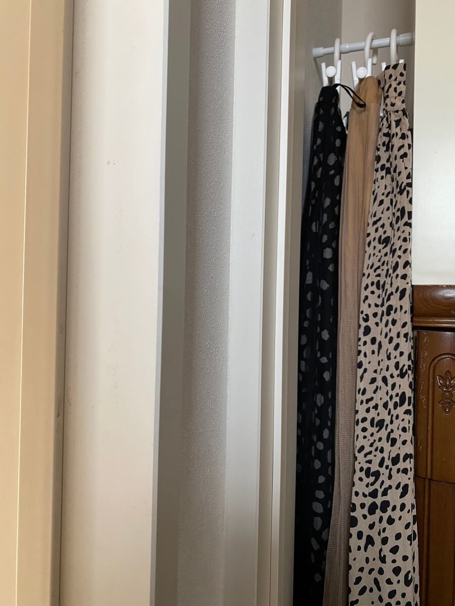 フックタイプにも利点はあったんです。つっぱり棒にすぐ引っ掛けられるので、設置した時は良かったんです。
