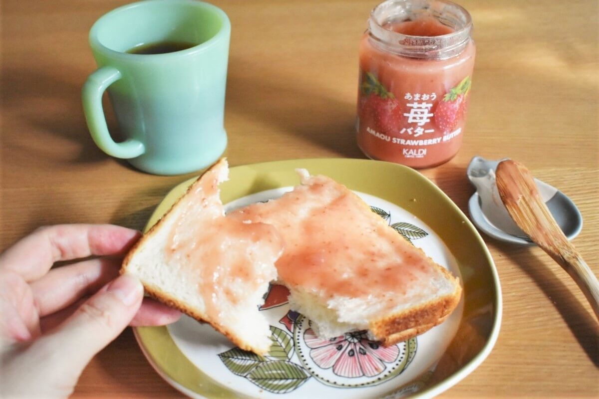 ──カルディ「あまおう苺バター」は食パンではないもののほうが合うのではないか?