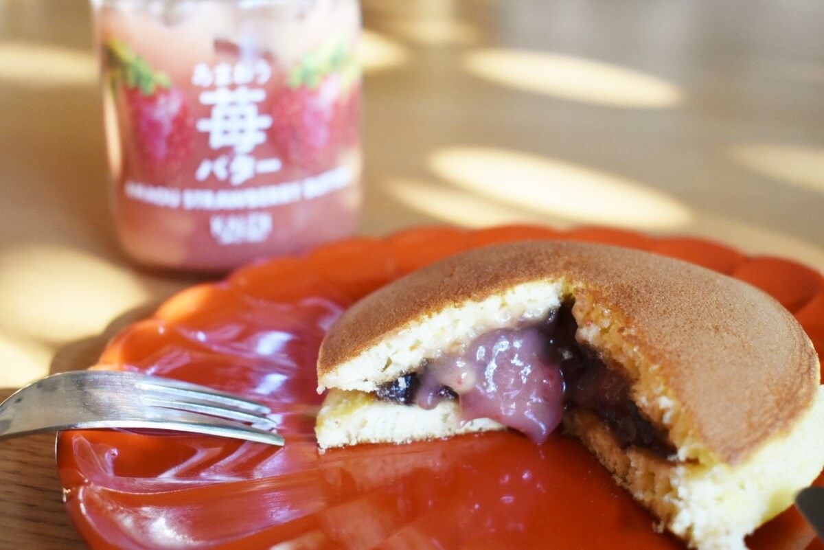 苺バターの「バター」がしっかり仕事をしていて、どら焼きの皮が確実に「パンケーキ」の風味に!