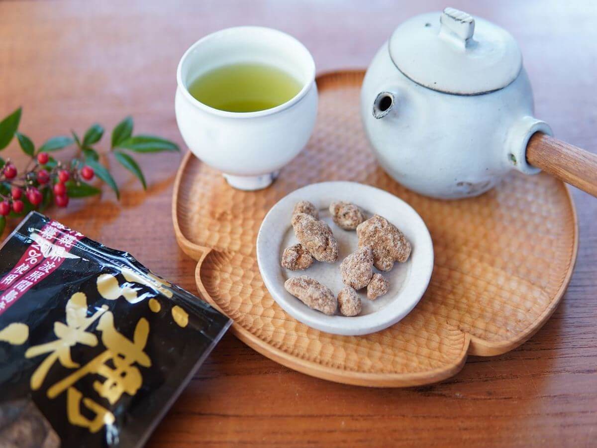 3. 濃い緑茶でほっと一息「黒糖くるみ」