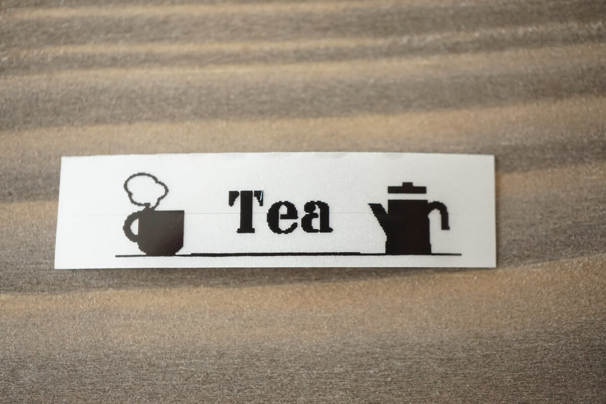 こちらは透明のテープに黒の文字が印刷されるものを使用して作ったラベルです。