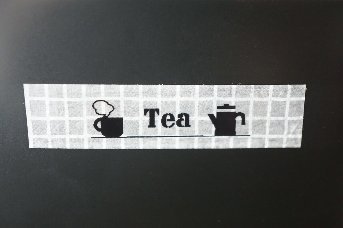 自分好みの柄のマスキングテープの上に、先ほど作った透明ラベルを貼ると、このようになります。