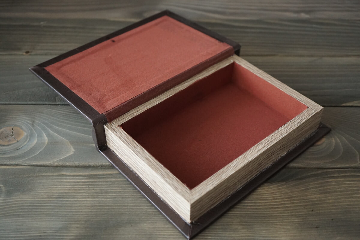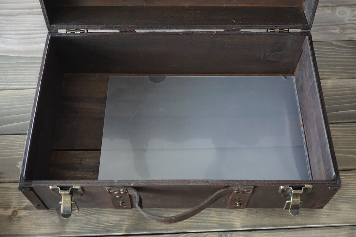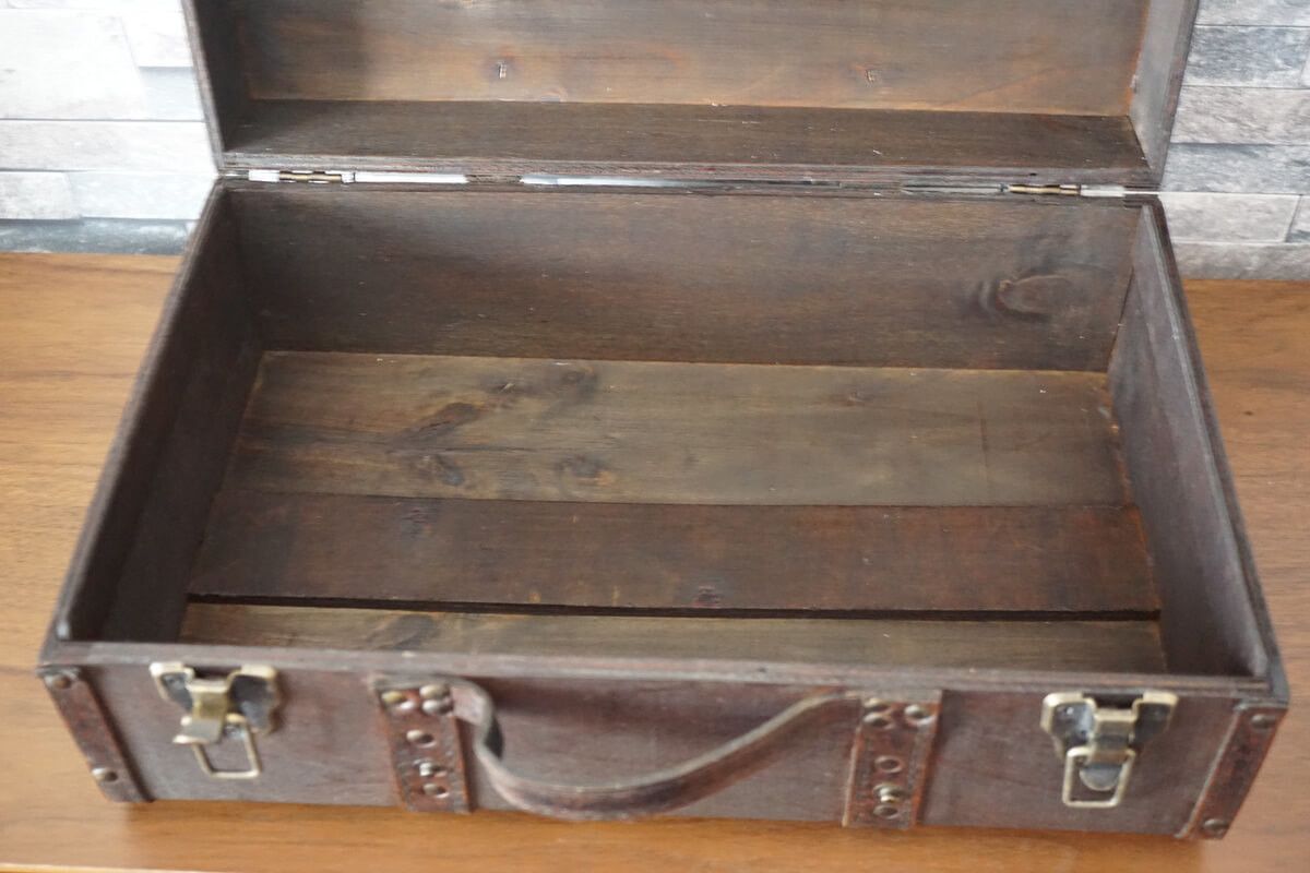 トランクの中は木で作られていて、底はフラットではなく真ん中部分に5mmほどの高さがあります。
