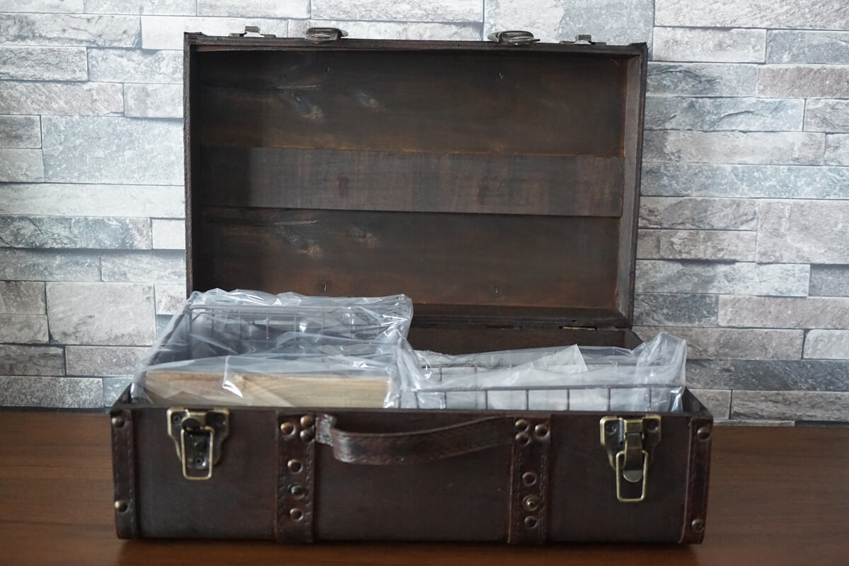 トランクを開けると中に4点のアンティークテイストの雑貨が入っていました。