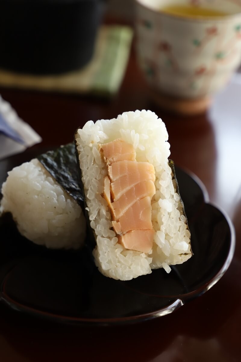 縦半分に割ってみると大きくて美味しそうな鮭が入っています!