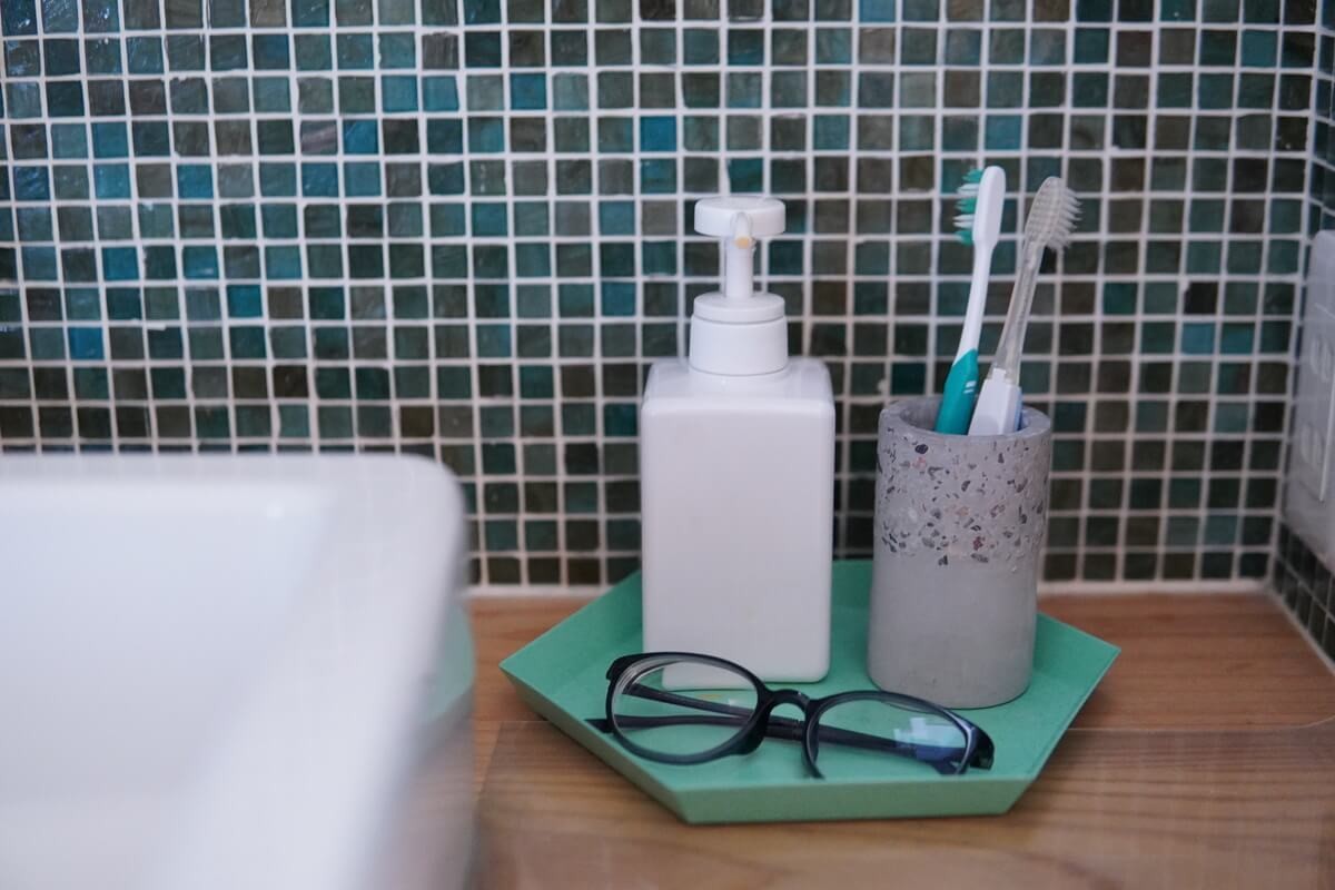 水滴をすばやく吸収してくれる珪藻土小物入れは水回りの収納におすすめです。