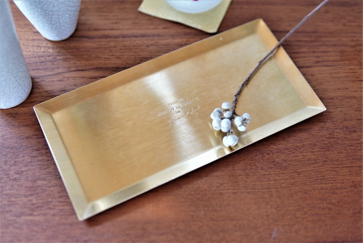 こちらの真鍮製のトレイは500円商品ですが、とても高級感があり素敵です。