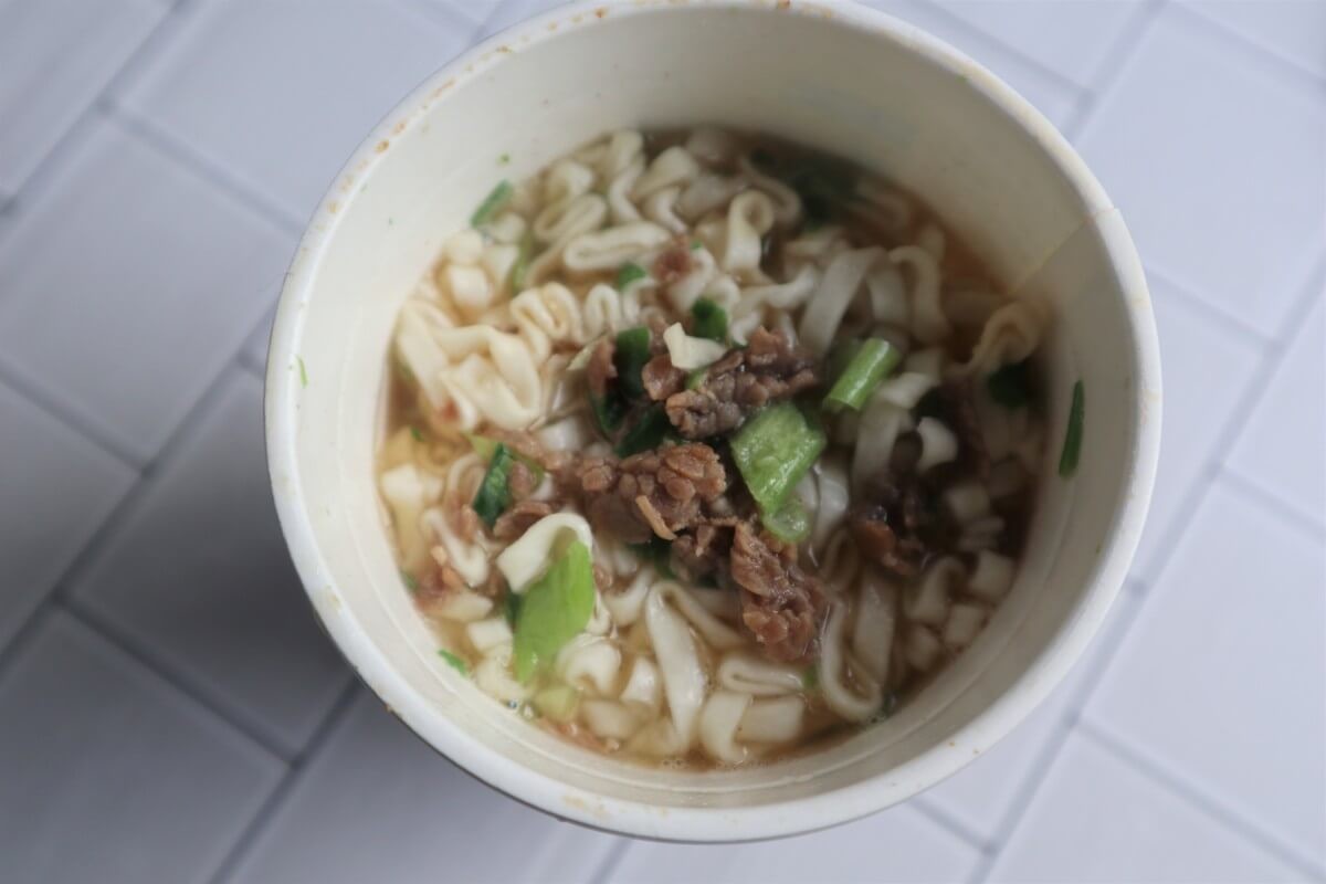 うどんは柔らくコシはありませんが、いわゆるカップうどんという感じで時々こういうの食べたくなるよね~という感じ。