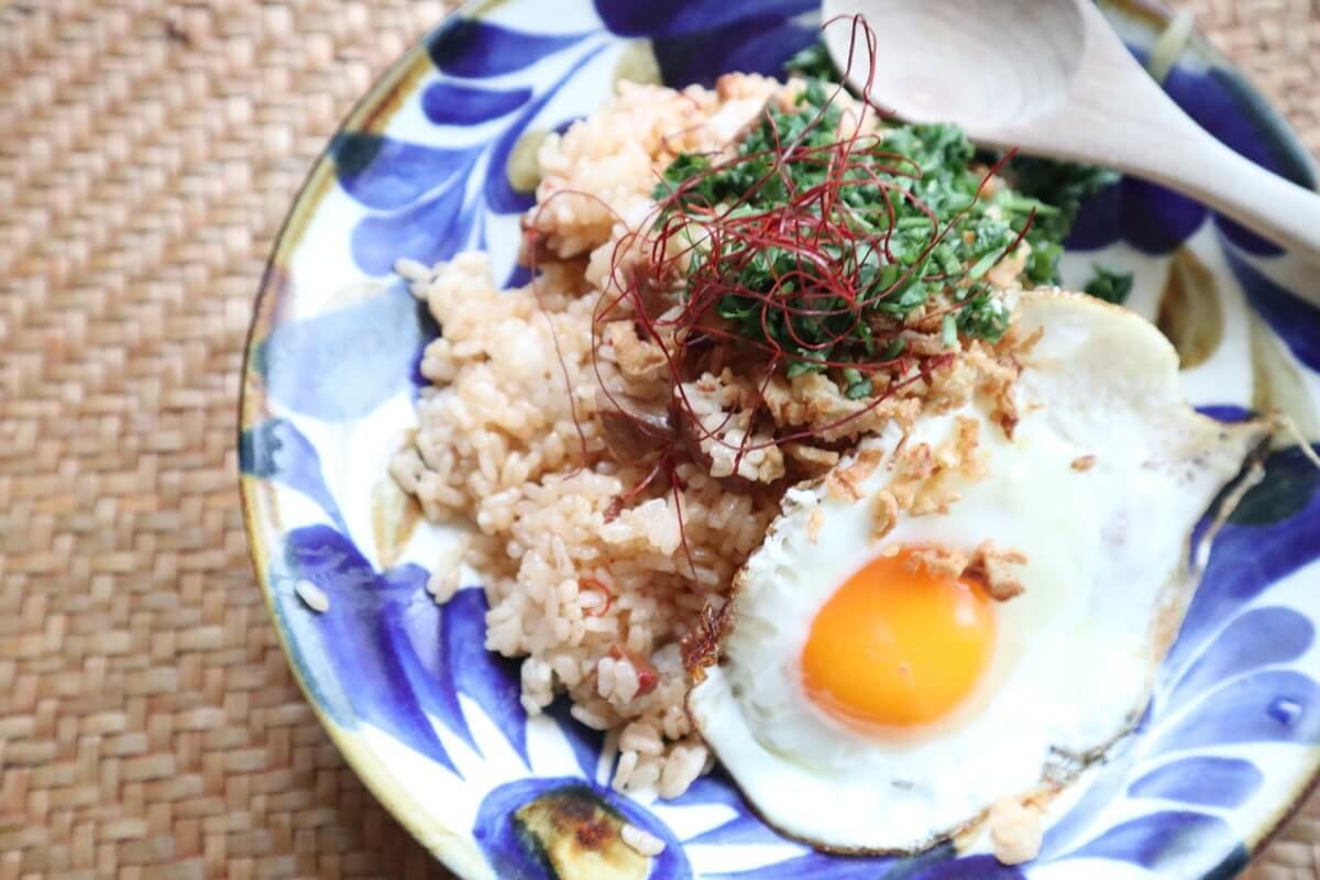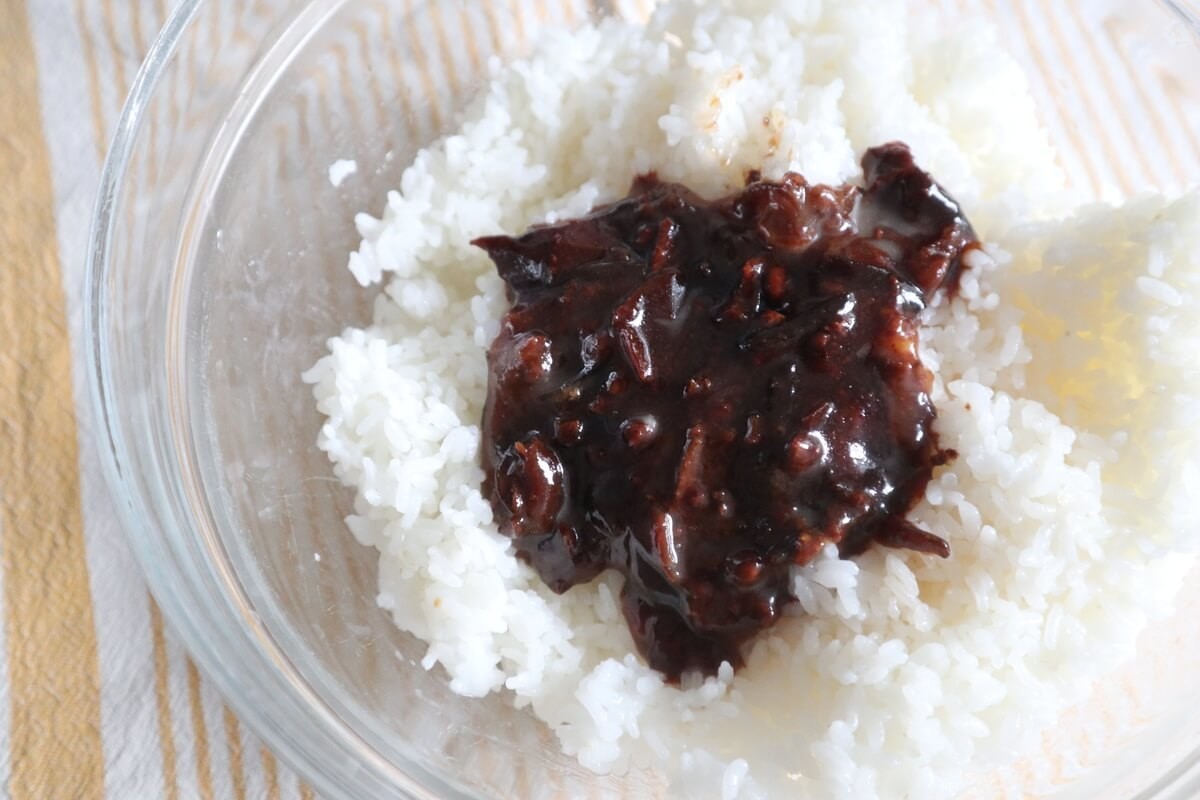作り方はとても簡単です。 ごはん(2合分)に混ぜます。 器に盛って、オニオンフライや目玉焼き、パクチーなどを添えたら完成です。