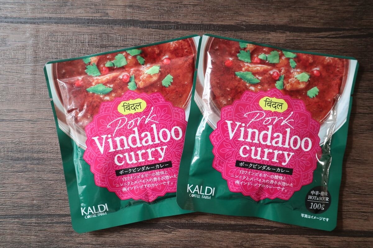 カルディの《ポークビンダルーカレー》100g209円。 こちらは1食分になりますが、とにかく美味しい! 初めて買っていこう何度リピ買いしたことか。