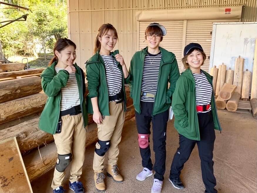またサイズはMからの展開ですが、153㎝の低身長の私(写真一番右)はMサイズを着ています。